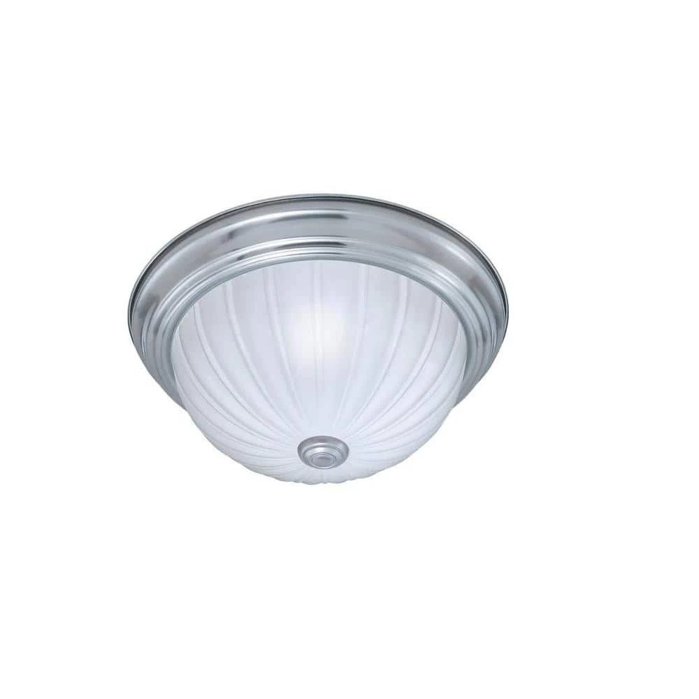 This one-light ceiling mount fixture comes in a brushed nickel finish. A classic design that will offer your room a warm and inviting ambiance. With its etched melon style glass shade this beautiful fixture is ideal for use in bathrooms, laundry rooms and bedrooms. Rated for damp locations and for a 90C supply wire.