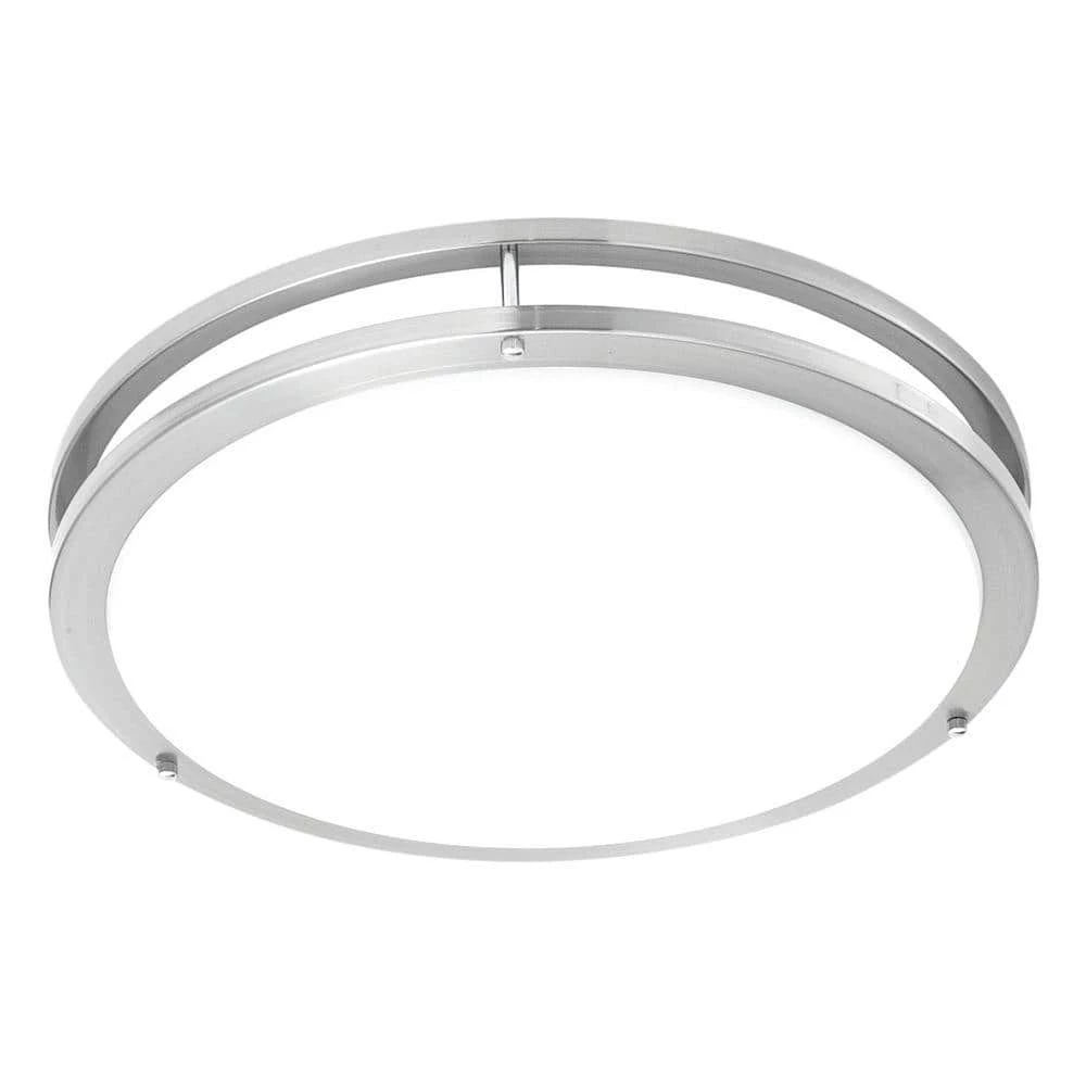 This Indoor Fluorescent lighting collection ceiling fixture features a flushmount brushed nickel finish. The 1-light white acrylic shade diffuser offers a transitionally inviting ambiance to your home. The evenly rounded contour measures 14 in. Dia and 4 in. H. Recommended using one 22-Watt fluorescent Circline bulb (not included). This light fixture is rated for dry indoor locations. An ideal addition to dining rooms, kitchens, bedrooms, stairways and other living spaces.