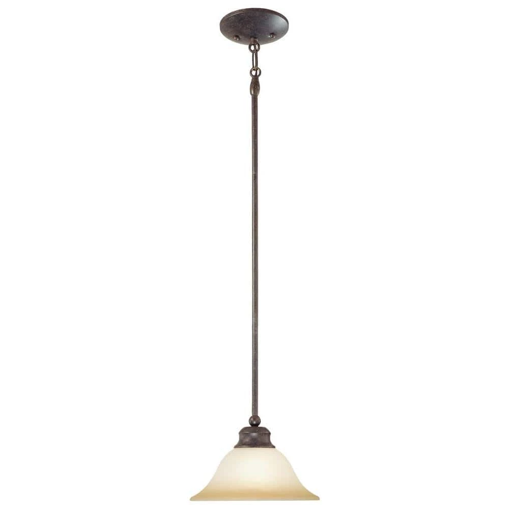 This Cognac edged glass in sable bronze finish welcomes you with a warm white light, creating the perfect atmosphere for intimate gatherings. The pendant features a cognac edged style glass ideal for use in kitchens, dining areas, and over kitchen islands. It comes with a 12 ft. wire, two 12 in. and two 6 in. rods.