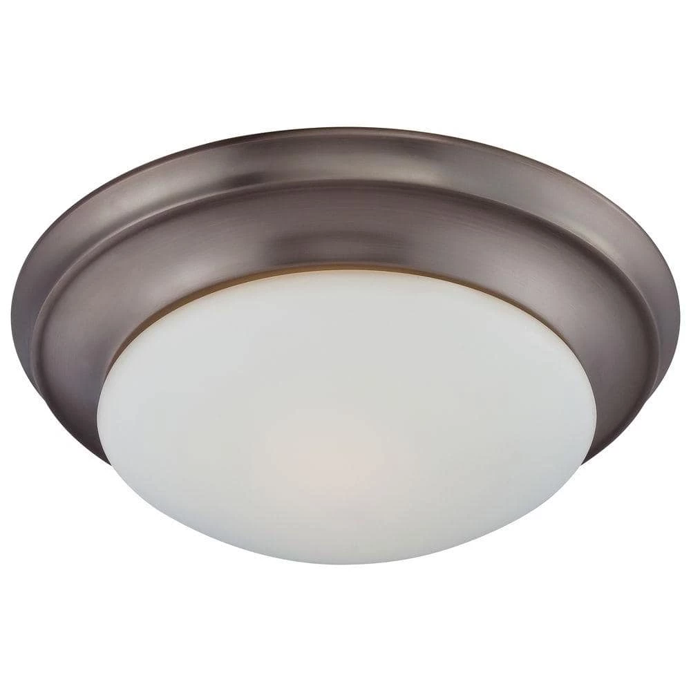 This two-light ceiling mount fixture comes in an oiled bronze finish. A classic design that will offer your room a warm and inviting ambiance. This beautiful etched style glass fixture is ideal for use in bathrooms, laundry rooms and bedrooms. Rated for damp locations.