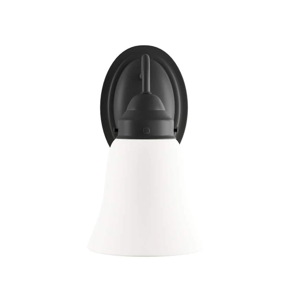 This Two-Light Wall Sconce refreshes your home’s lighting. It features an oil-rubbed bronze finish and a white glass shade for a modern look. It’s easy to install yourself with the included hardware and it uses a standard medium base bulb.