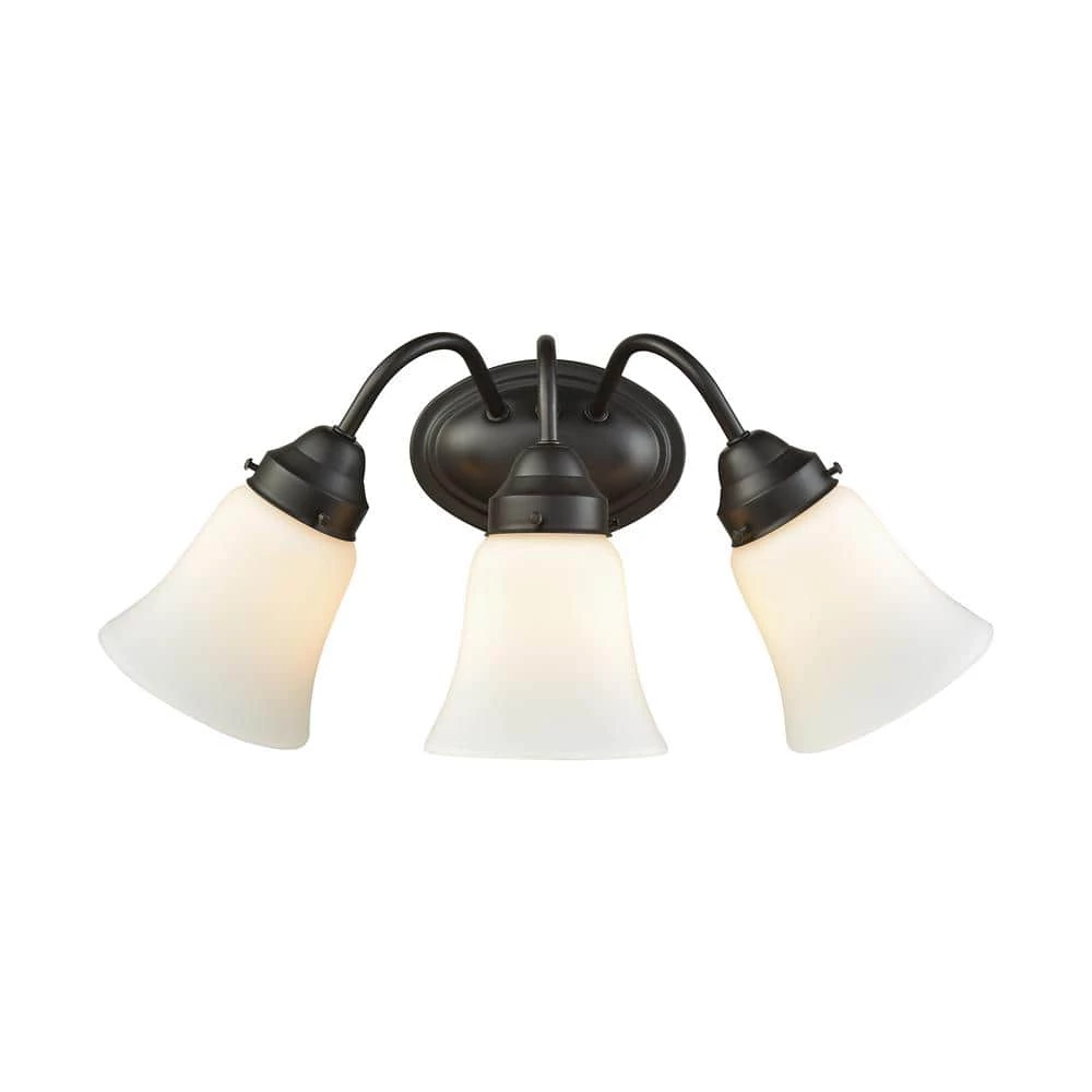 Califon 3 Light Vanity In Oil Rubbed Bronze With White Glass. All bath lights are rated for indoor locations. Fixtures are shipped with installation instructions and hardware. Thomas Lighting offers a versatile and stylish range of lighting designed with the builder and specifier in mind, allowing mix and match capabilities across collections.