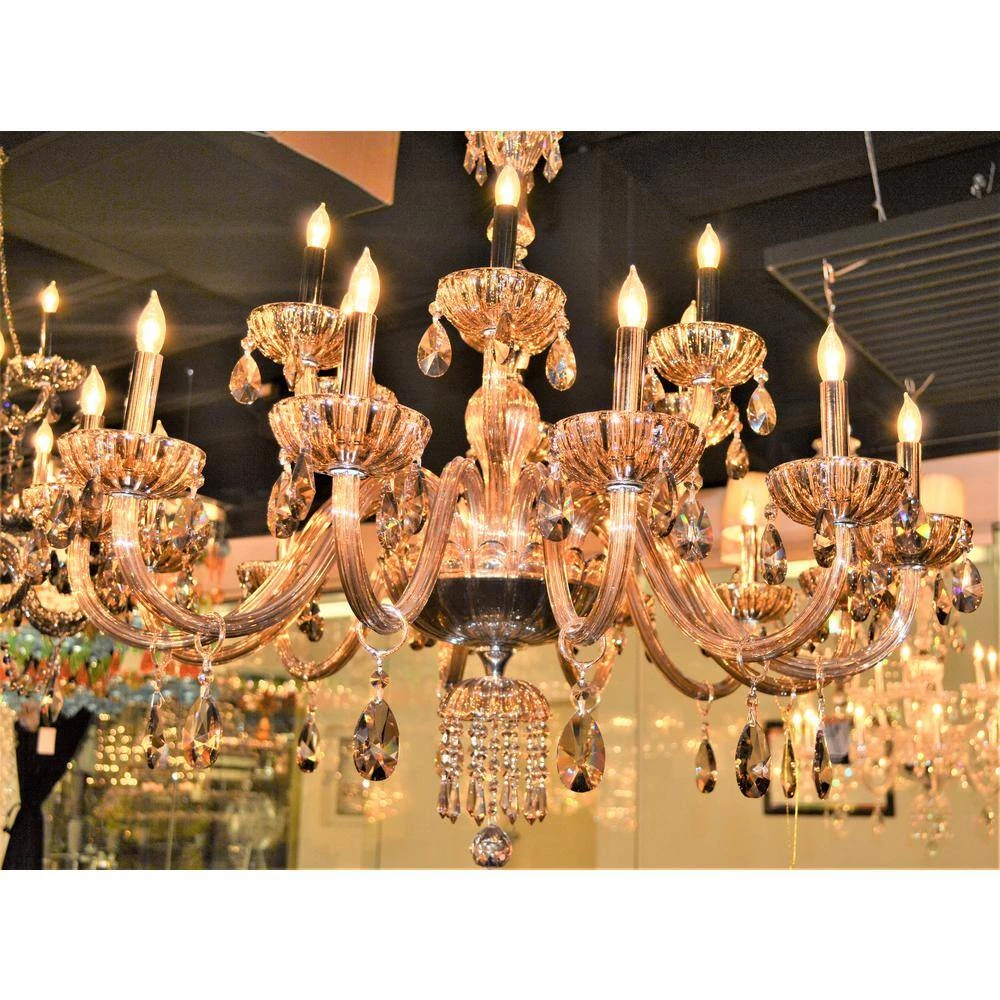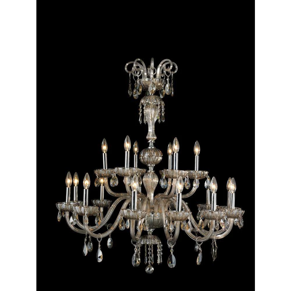 This stunning 18-light Crystal Chandelier only uses the best quality material and workmanship ensuring a beautiful heirloom quality piece. Featuring a radiant chrome finish and finely cut premium grade golden teak (translucent champagne color) crystal with a lead content of 30%, this elegant chandelier will give any room sparkle and glamour. Worldwide Lighting Corporation is a privately owned manufacturer of high quality crystal chandeliers, pendants, surface mounts, sconces and custom decorative lighting products for the residential, hospitality and commercial building markets. Our high quality crystals meet all standards of perfection, possessing lead oxide of 30% that is above industry standards and can be seen in prestigious homes, hotels, restaurants, casinos and churches across the country. Our mission is to enhance your lighting needs with exceptional quality fixtures at a reasonable price.