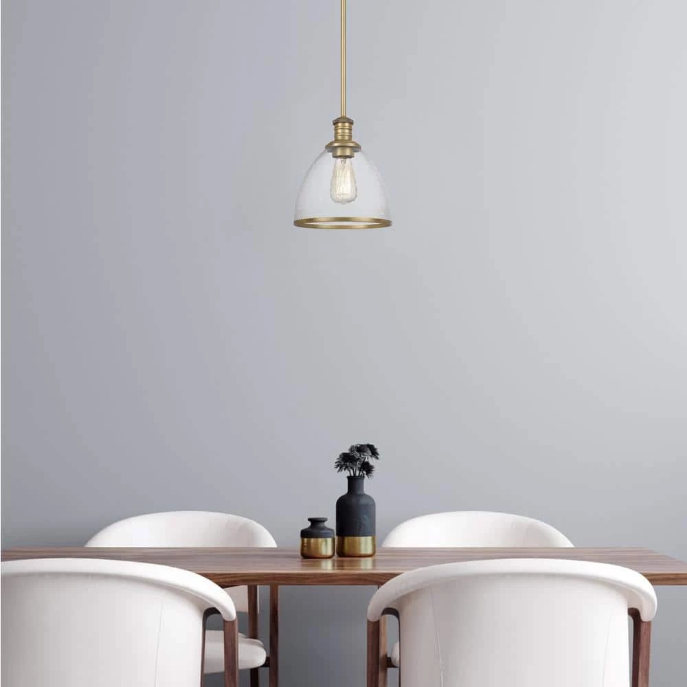 Whether you’re leaning into a rustic, industrial-chic aesthetic in the den or offering up a simple, utilitarian twist to your contemporary abode, this eye-catching luminary is sure to tie a modern and on-trend environment together with ease. Featuring an understated metal canopy and wire with a clear glass shade, this mini pendant makes a subtle statement in any space. This fixture accommodates up to 100-Watt maximum bulbs (not included).