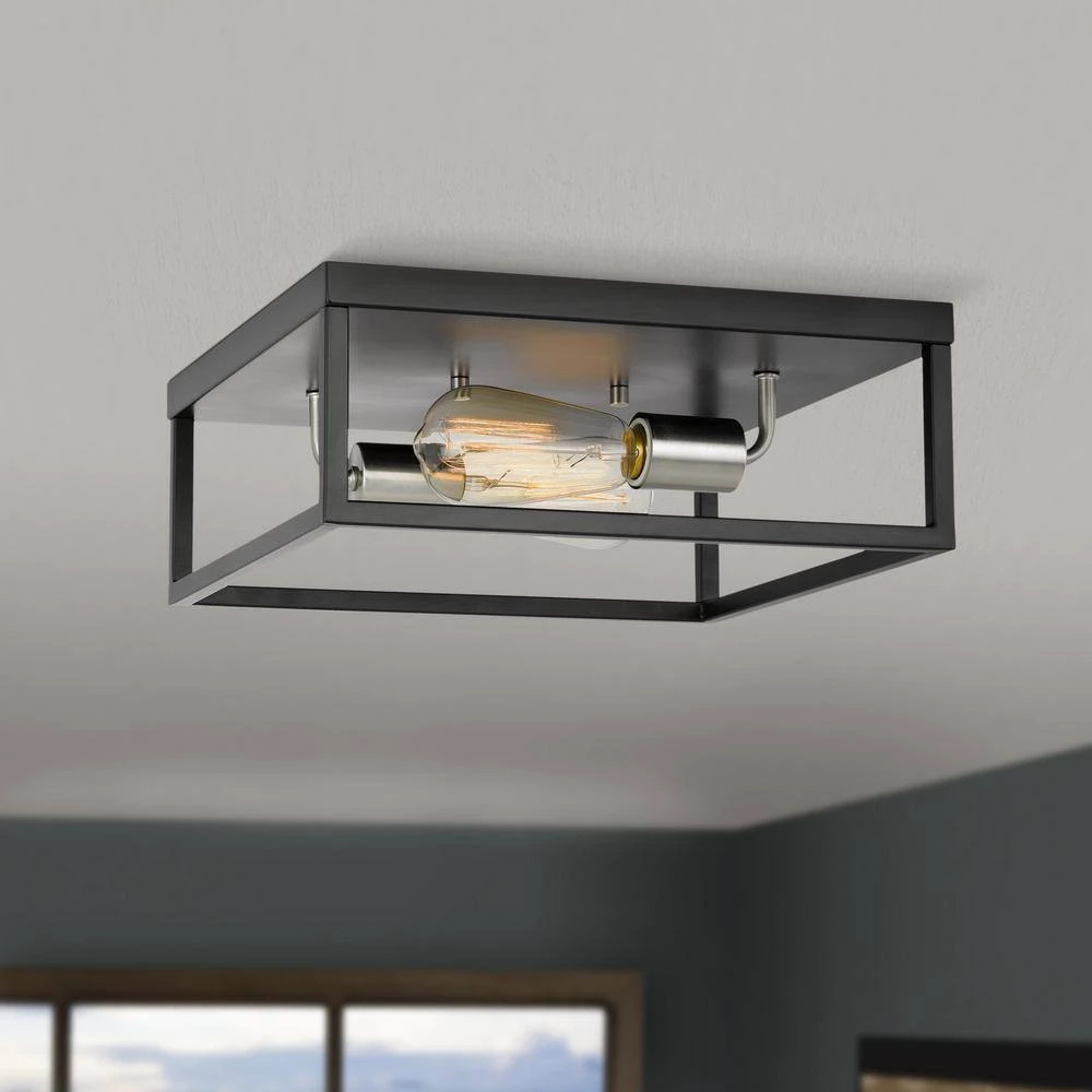 This item fixture with a black finish can elevate your space. The distinctive design of this contemporary and industrial style is seen in the overall metal structure. Highlighting the open, square frame which surrounds any bulb you choose.
