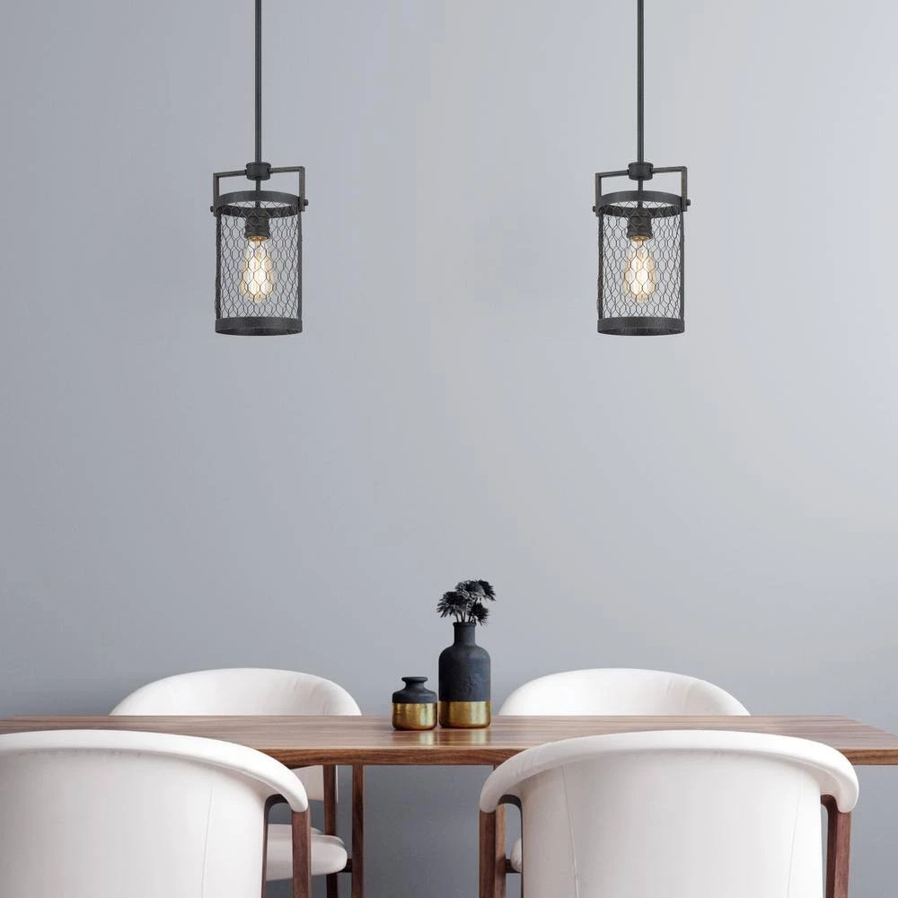 Perfect for hanging out above the kitchen island or suspended from the ceiling in the entryway, this 1-light single pendant casts an inviting glow over any space in your home. Crafted from metal, this piece features a curved cage-inspired shade around its single exposed bulb. Its versatile solid finish pairs well with modern decor, while its clean-lined design gives it a sleek look. Diffusing light from one 60W medium-base bulb, this piece washes your home with ambient light.