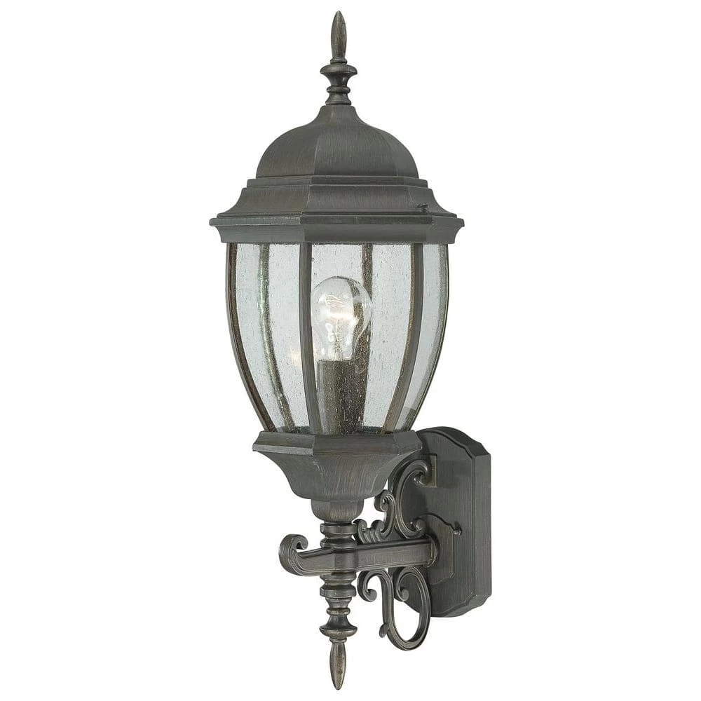The Covington collection is sure to enhance your outdoor ambiance with its die-cast aluminum finish. This one-light traditional outdoor wall lantern comes in a painted bronze finish with a clear seedy glass panels and rounded molding. Rated for wet locations, you can use any Philips energy saving light bulb with top of glass facing upward. Feel free to decorate your outdoor sconce with or without a tail.