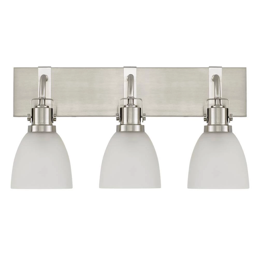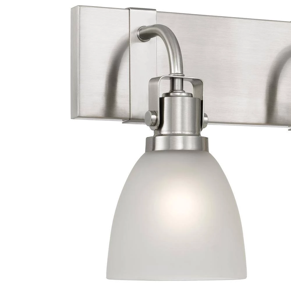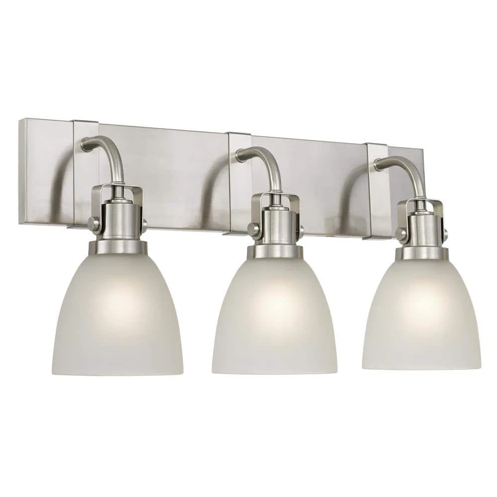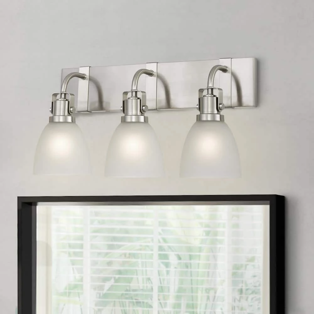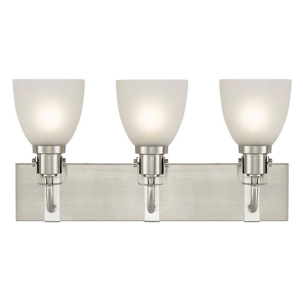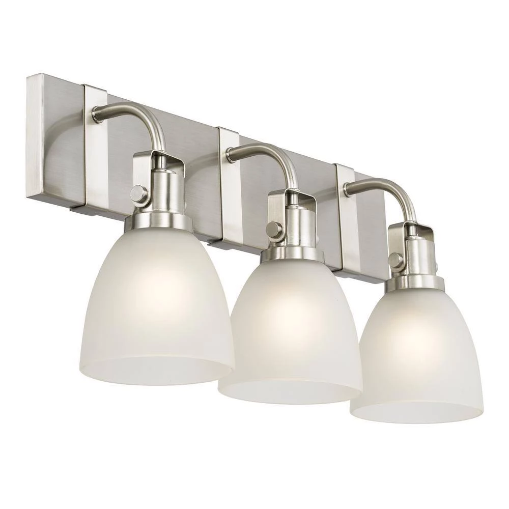 Featuring frosted glass shades, this 3-light fixture brightens up your abode and provides proper task-lighting. Its steel circular backplate and curved arms bring the charm of a modern farmhouse to your aesthetic. It offers style and versatility above any mirror. Incandescent or LED light bulb compatible (not included).