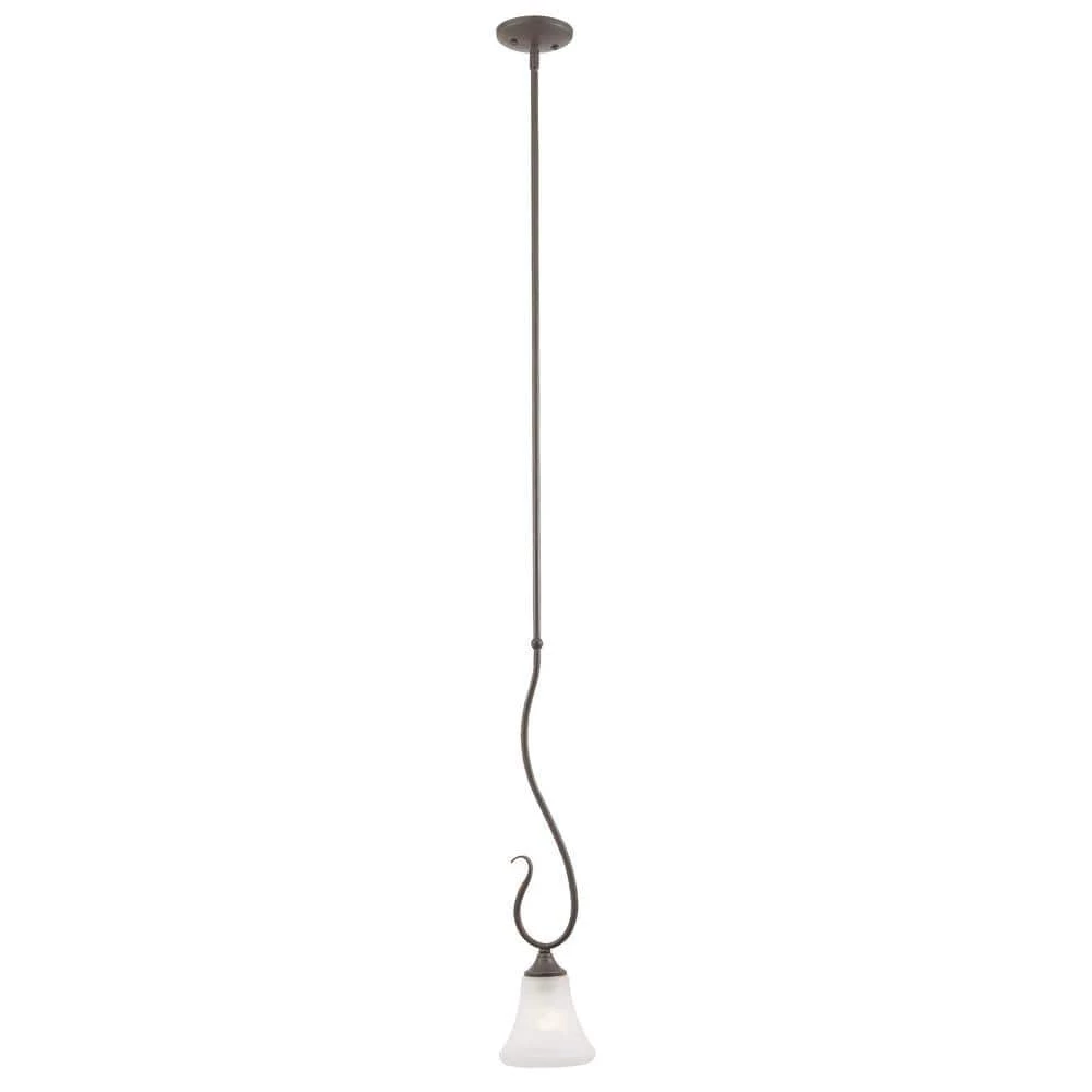 Graceful elliptical arms denote movement and bring elegance to this simple collection. A rich painted bronze finish paired with swirl alabaster glass shade gives this transitional 1-light 100-Watt medium base mini-pendant an undeniable sophistication. Measuring 6 in. W x 26 in. H this fixture is a handsome focal point to any dining area, bar or kitchen. Included in the package is an additional 12 ft. of wire and 30 in. of rod allowing customizing the height for your space. For additional rod order M241463 (sold separately). Coordinating pieces in the Elipse collection (sold separately) allow for endless design possibilities throughout your home.