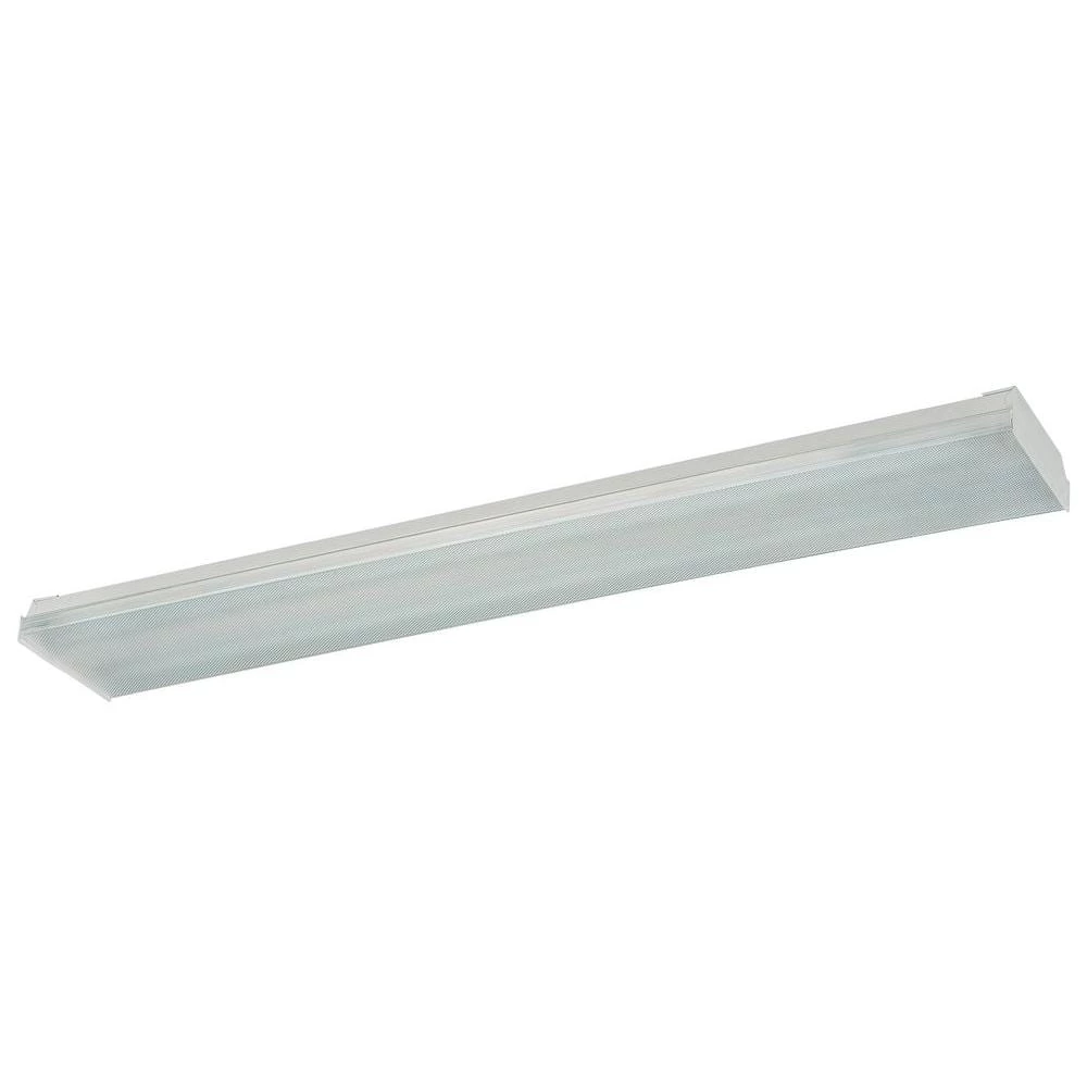 This Fluor 2-Light White Flush Mount features a durable surface mount white steel housing for long-lasting style. The clear, acrylic prismatic lens diffuses the light from the two encased bulbs. It accepts two 32-watt T8 linear fluorescent bulbs to provide bright illumination. Rectangular in shape, it measures 7.5 in. W x 3 in. H. Recommended using Philips light bulbs (not included). Rated for damp indoor locations, it is ideal to use in utility rooms, work rooms, basements and garages or anywhere surface suspended applications may allow.