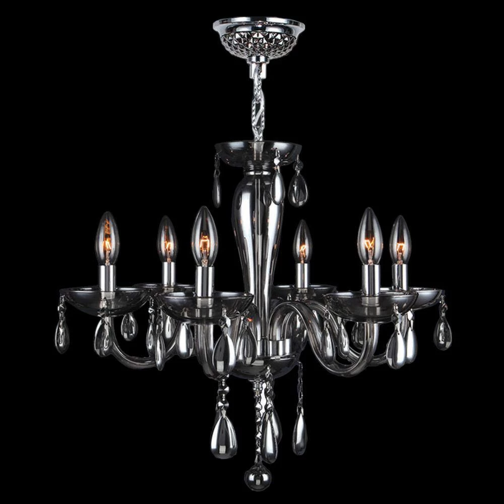 This stunning 6-light Chandelier only uses the best quality material and workmanship ensuring a beautiful heirloom quality piece. Featuring a radiant chrome finish and smoke hand-blown glass, this elegant chandelier is unique piece of art, completely created and shaped by hand. Worldwide Lighting Corporation is a premier designer manufacturer and direct importer of fine quality chandeliers, surface mounts, and sconces for your home at a reasonable price. You will find unmatched quality and artistry in every luminaire we manufacture.