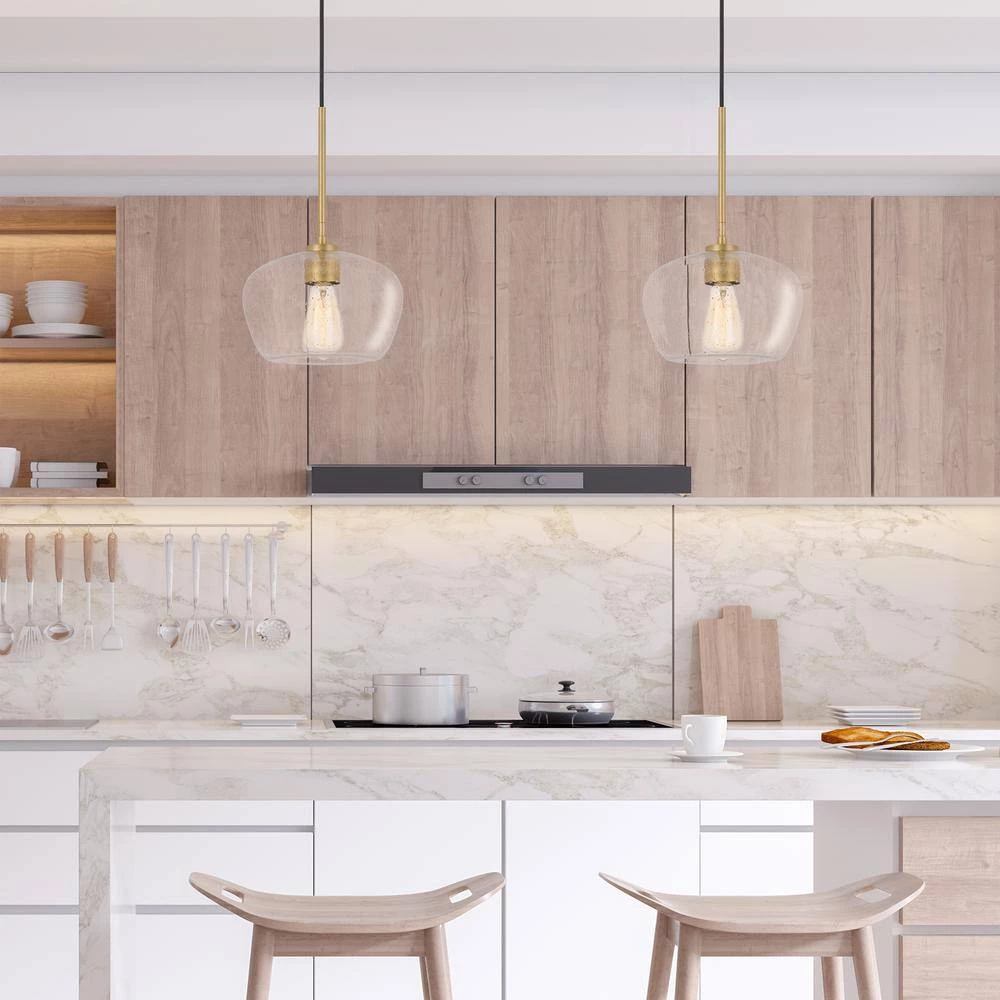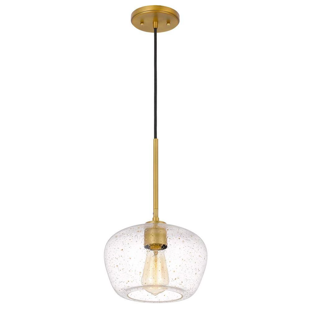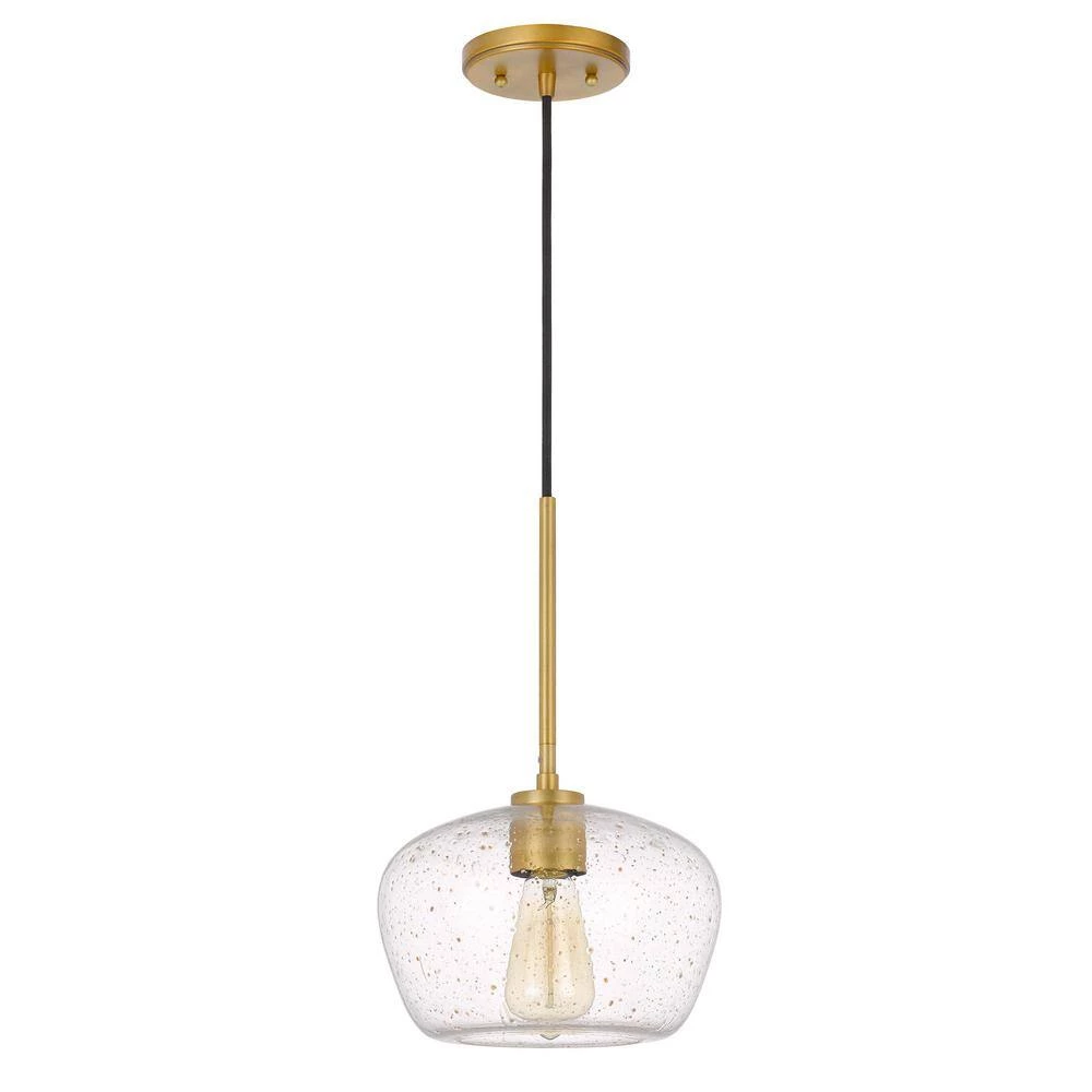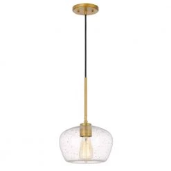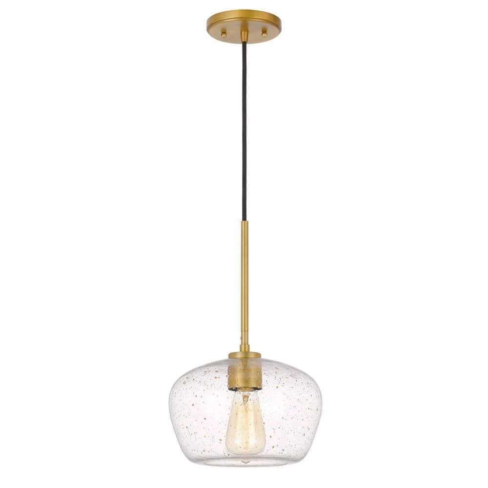 Bring a boost of brightness and a touch of contemporary style to any arrangement with this 1-light pendant. Crafted with a circular metal canopy, this fixture features a spherical glass shade with a smaller opening at the bottom that lets you switch out compatible 100W medium-base bulbs (not included) with ease. An adjustable hanging cord lets you tweak this design’s height to suit your space. Plus, the manufacturer backs this product with a 1-year warranty.