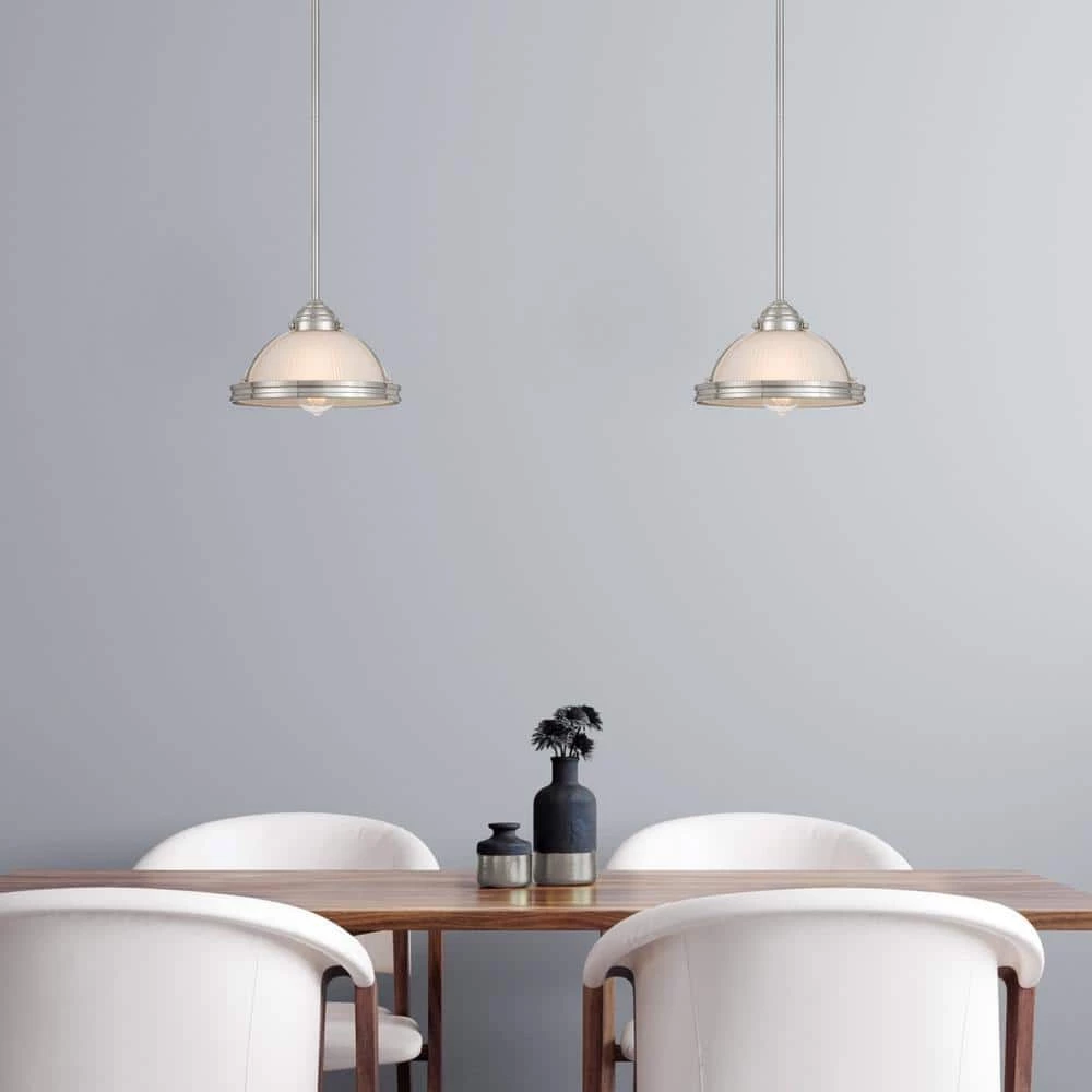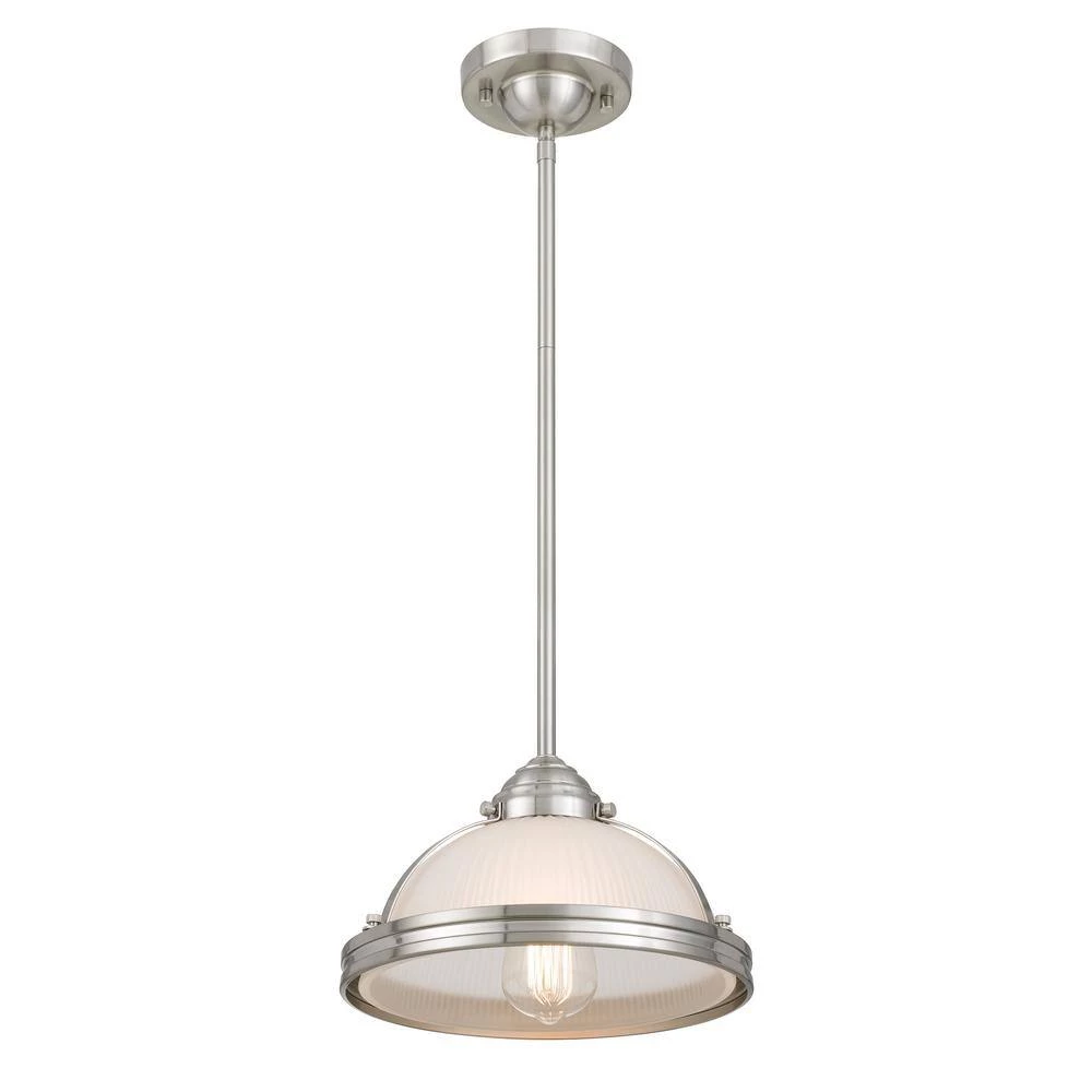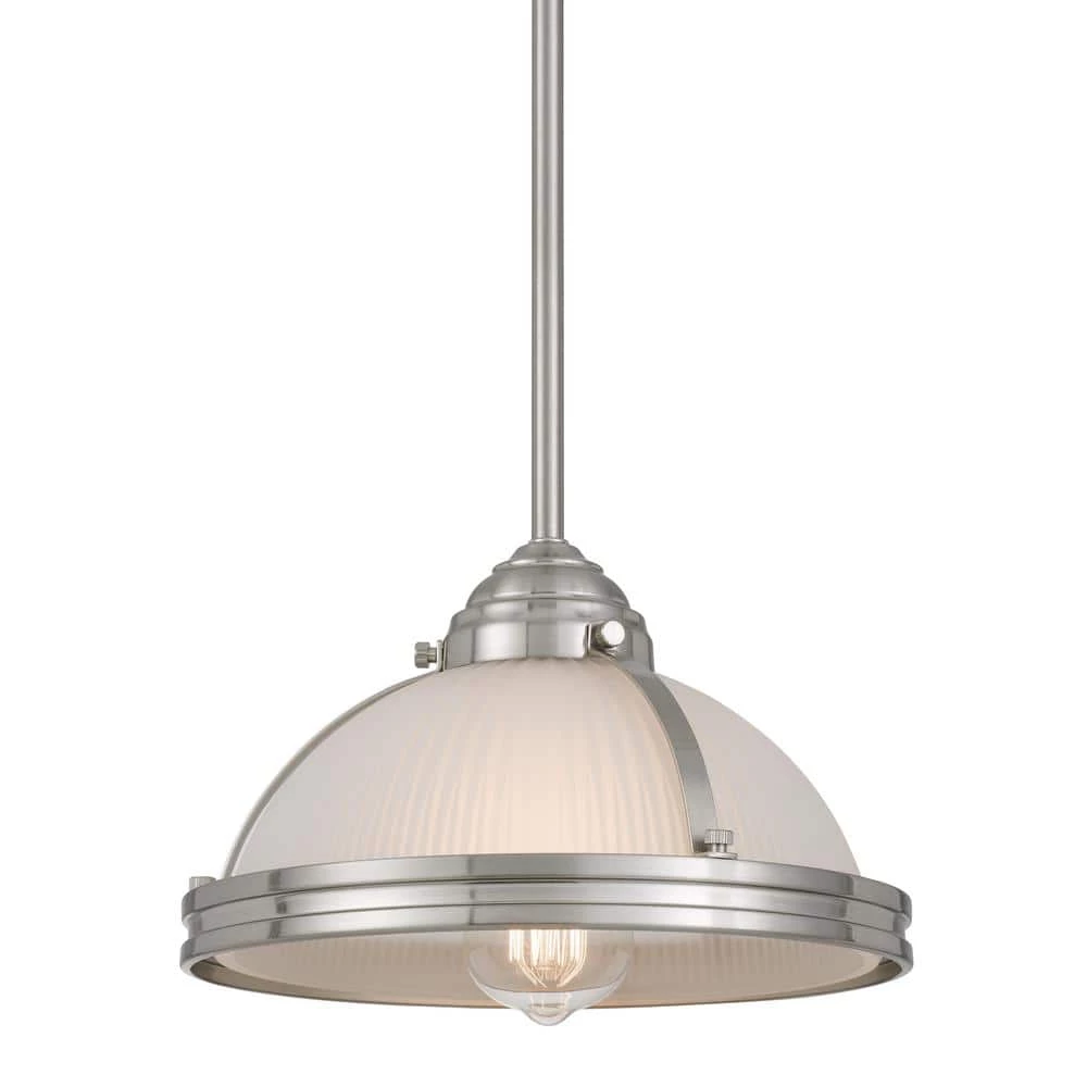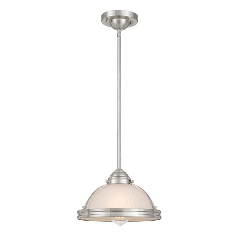 Hang traditional, farmhouse-inspired style above your kitchen island or dining table with this single light pendant. It’s made from metal and features a schoolhouse-inspired glass shade that has a metal trim. A 60-Watt bulb inside (not included) casts a bright glow throughout your space.