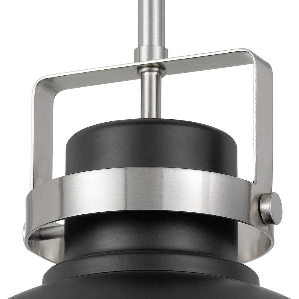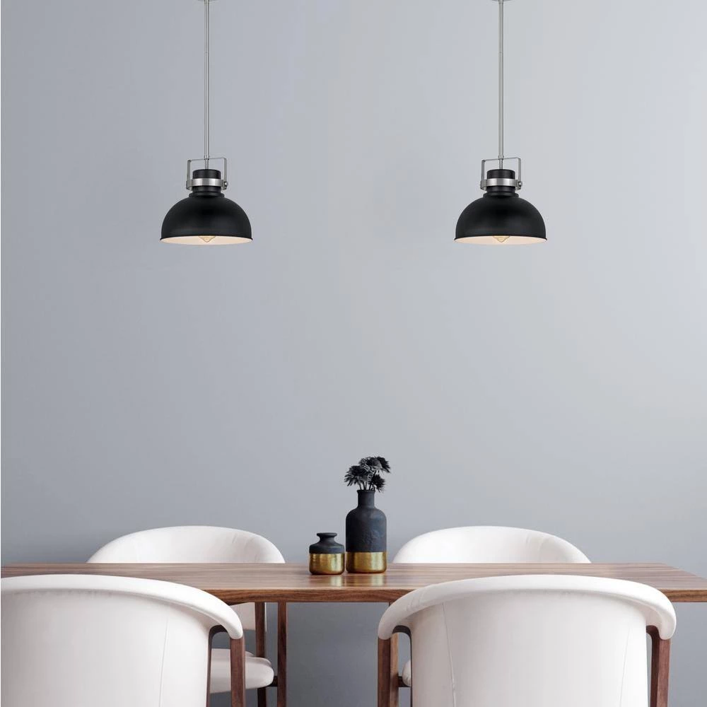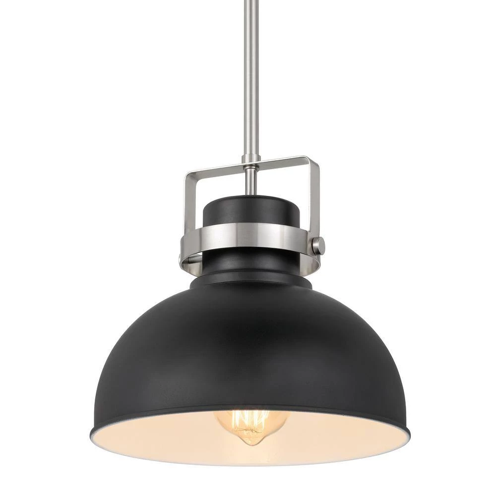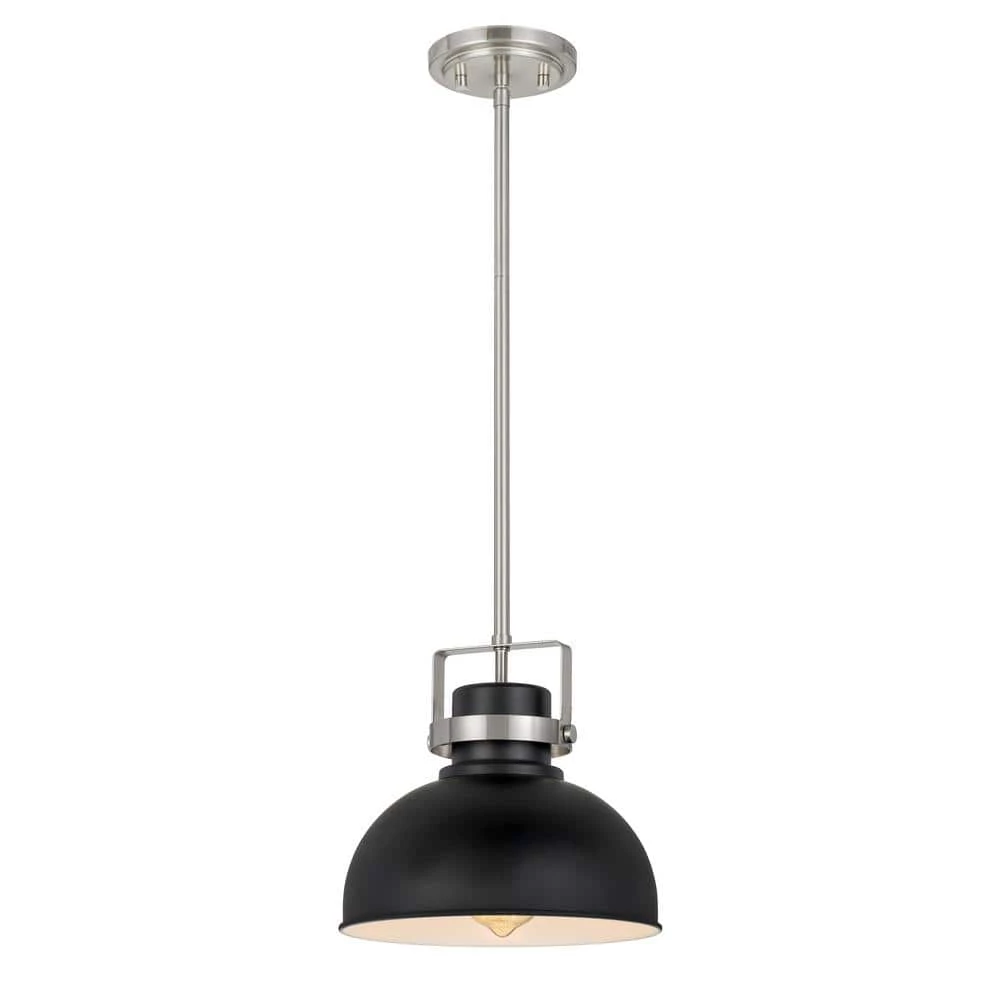 With its vintage detailing and classic good looks, this pendant light adds an upscale touch to any traditional interior. The brushed nickel finish is combined with a black metal hood for crisp style contrast. The single bulb provides plenty of bright light, softened by a diffuser panel.