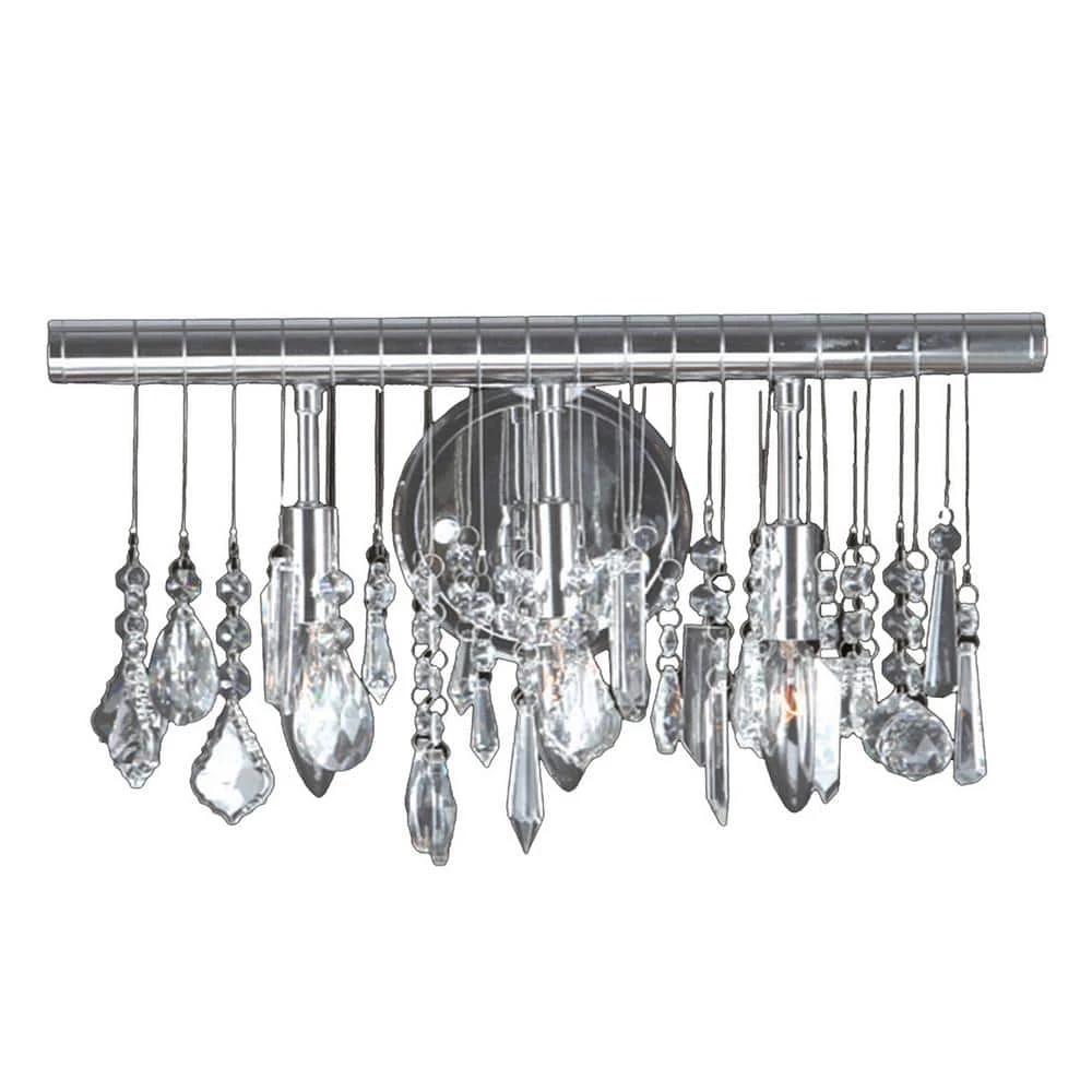 This stunning 3-light Vanity Wall Sconce only uses the best quality material and workmanship ensuring a beautiful heirloom quality piece. Featuring a radiant chrome finish and finely cut premium grade clear crystals with a lead content of 30%, this elegant wall sconce will give any room sparkle and glamour. Worldwide Lighting Corporation is a premier designer manufacturer and direct importer of fine quality chandeliers, surface mounts, and sconces for your home at a reasonable price. You will find unmatched quality and artistry in every luminaire we manufacture.