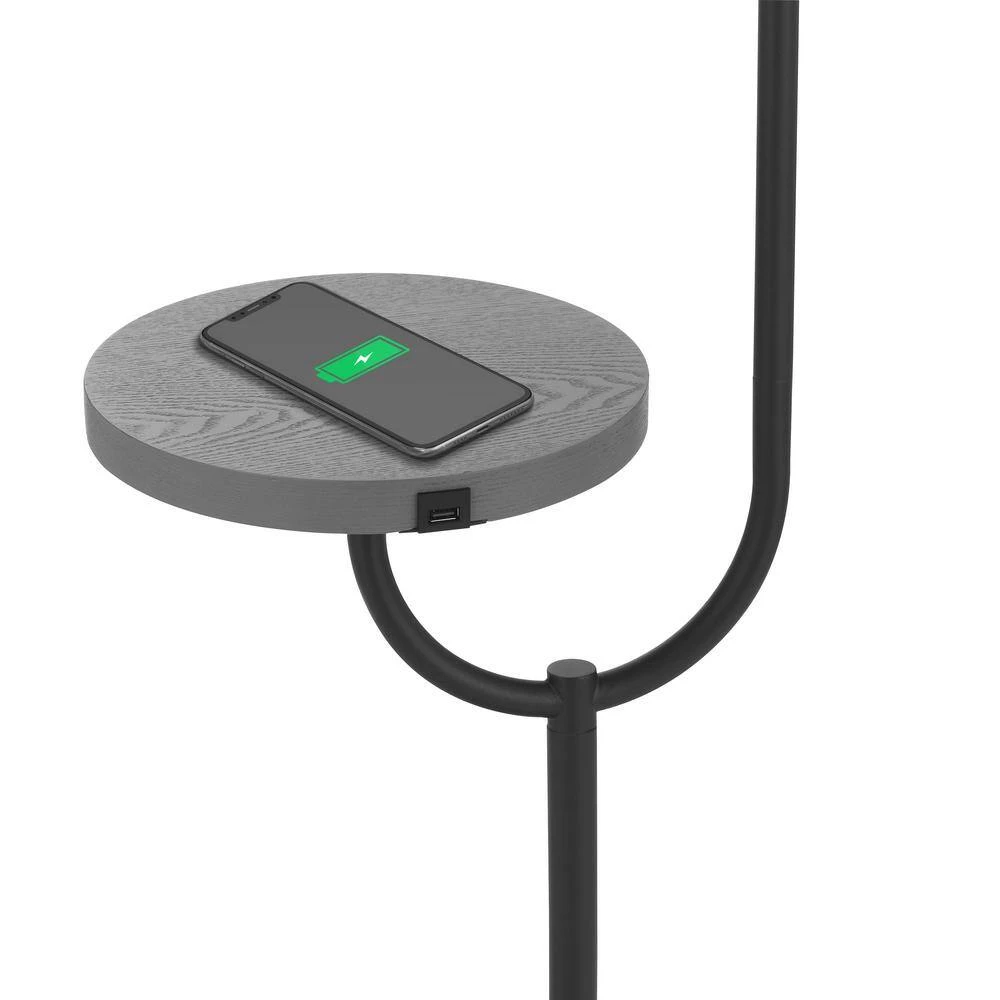 This stunning LED Floor Lamp with Wireless Charging and Table Top Shelf- Tall Standing Torchiere Lamp uses only the best materials and quality workmanship ensuring a beautiful quality piece. Capable of both mood and task lighting, Worldwide Lighting minimalist free standing upright lamp solves your home or office needs brightly and efficiently. It has an integrated 24 Watt LED that generates 1527 lumens of light. Gently touch to turn on and off easily, and 3-stage dimming with a built-in dimmer. Featuring a convenient shelf with a built-in Qi Standard wireless charging pad and a USB port so that you can charge and store your mobile devices easily and conveniently. Made of Medium Density Fiberboard in light gray finish.