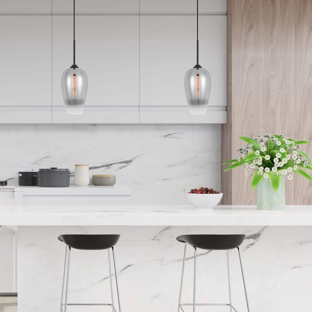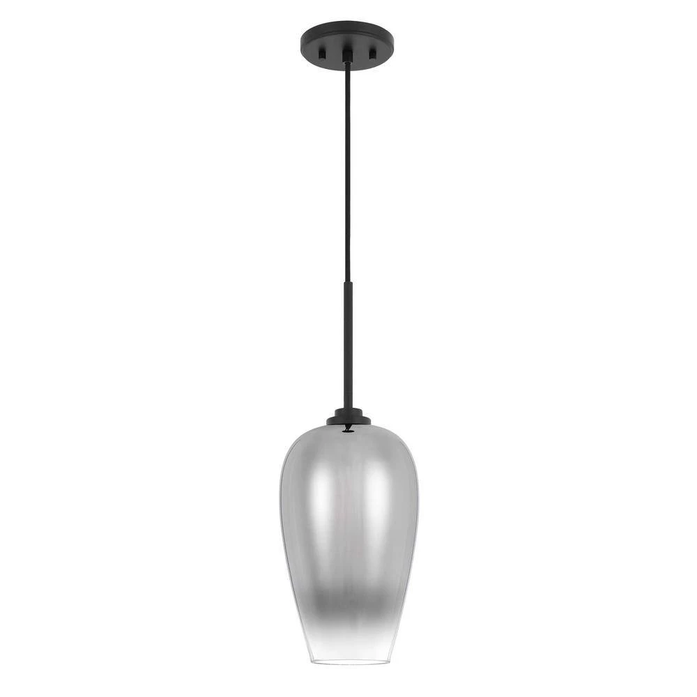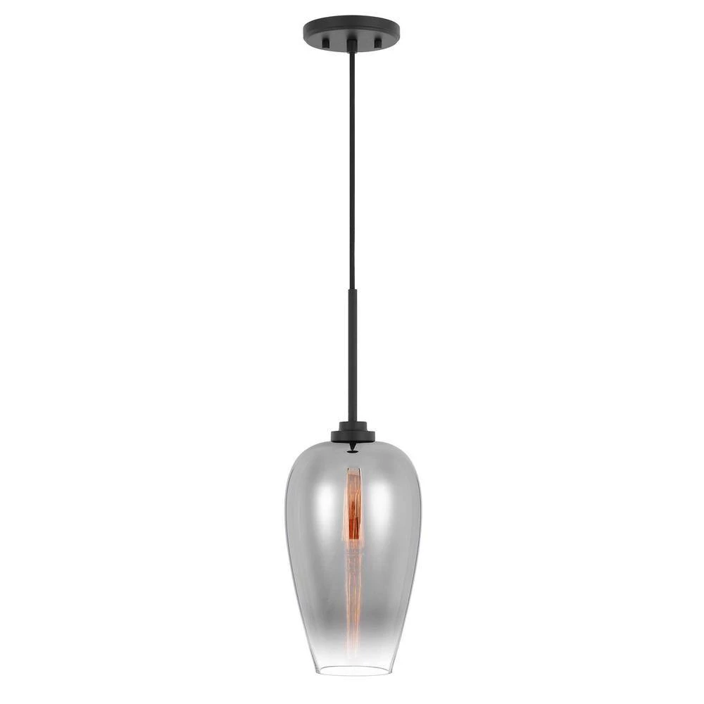 Whether you’re leaning into a rustic, industrial-chic aesthetic in the den or offering up a simple, utilitarian twist to your contemporary abode, this eye-catching luminary is sure to tie a modern and on-trend environment together with ease. Featuring an understated metal canopy and wire with a Graduated Color Glass shade, this mini pendant makes a subtle statement in any space. This fixture accommodates up to 100-Watt maximum bulbs (not included).