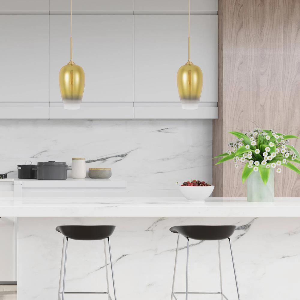 Whether you’re leaning into a rustic, industrial-chic aesthetic in the den or offering up a simple, utilitarian twist to your contemporary abode, this eye-catching luminary is sure to tie a modern and on-trend environment together with ease. Featuring an understated metal canopy and wire with a Graduated Color Glass shade, this mini pendant makes a subtle statement in any space. This fixture accommodates up to 100-Watt maximum bulbs (not included).