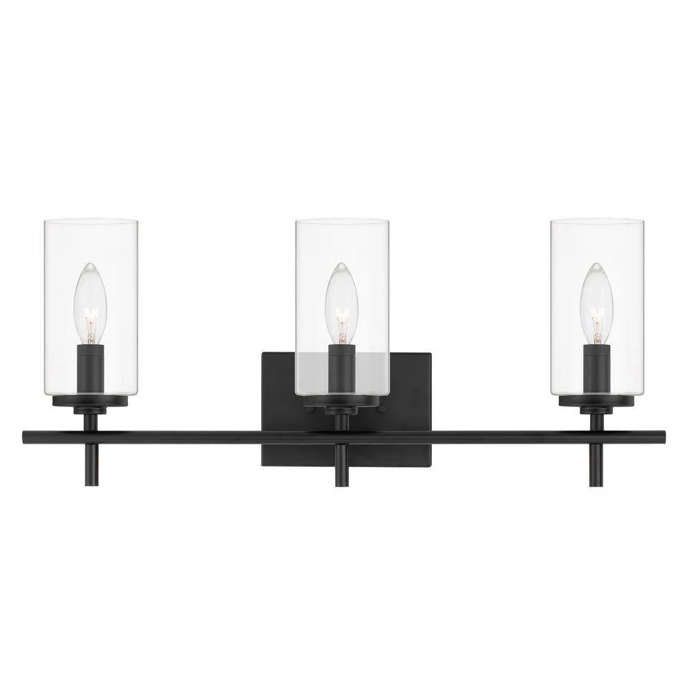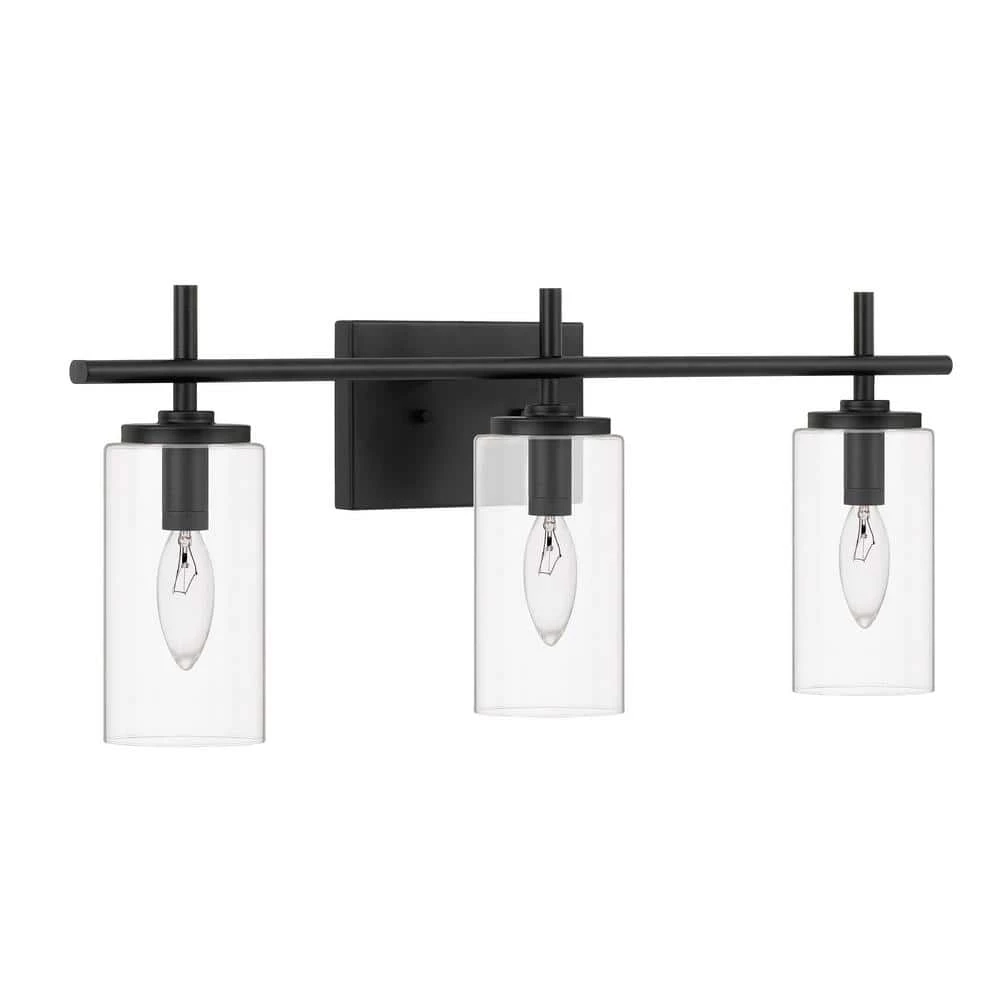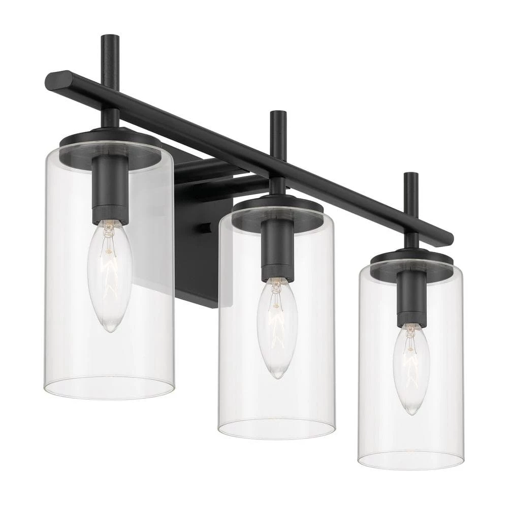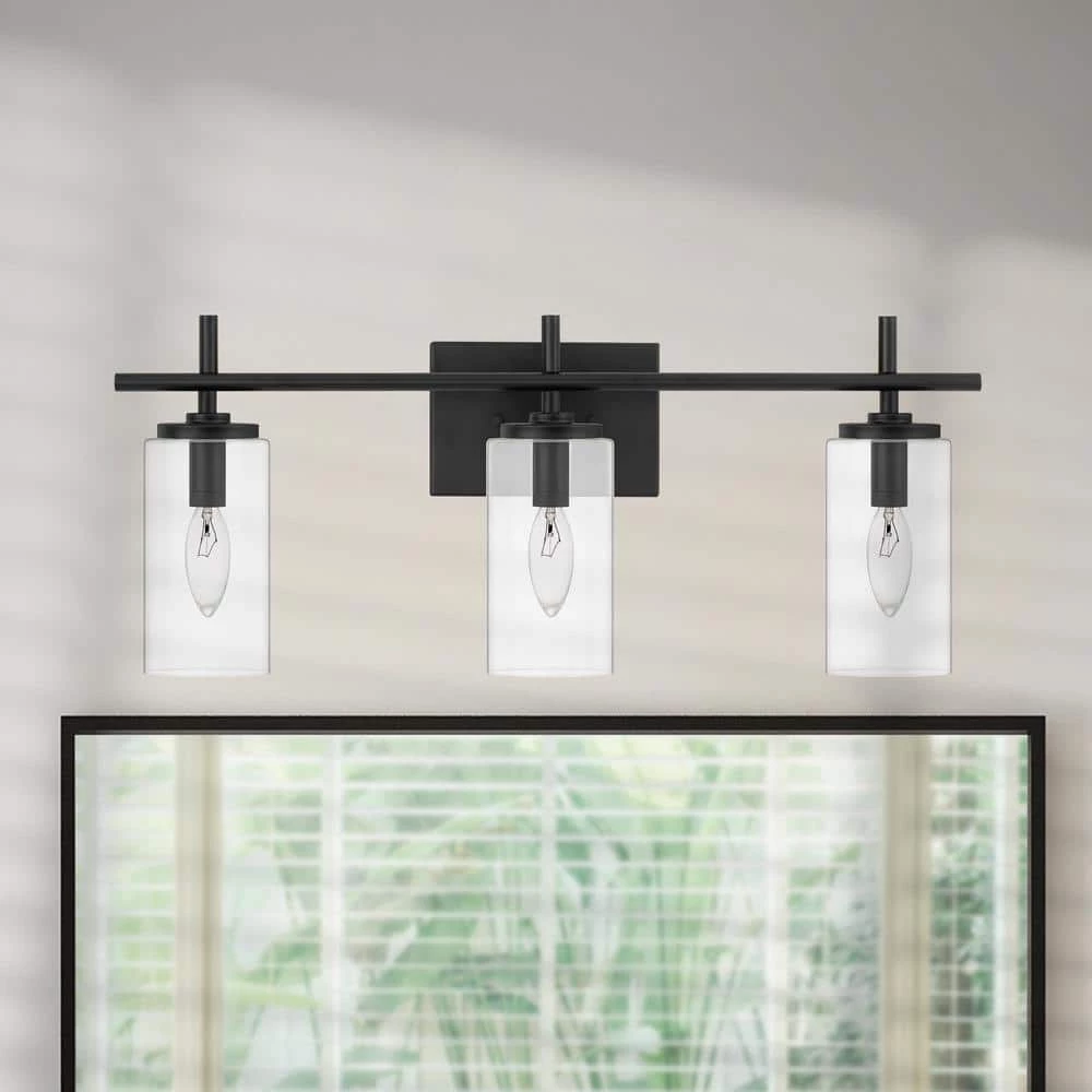 This 3-light vanity light brings a boost of brightness to your morning and evening routine. It showcases a clean-cut rectangle-shaped backplate that has a reversible mounting feature. Attached to the plate is 1 straight horizontal arm that holds 3 clear wine glass-shaped shades. Each shade accommodates 1 medium-base bulb up to 100-Watt that aims to light up, down, or horizontally in the main bathroom or guest room. Plus, it’s compatible with a dimmer switch, allowing you to adjust the lighting to your liking.