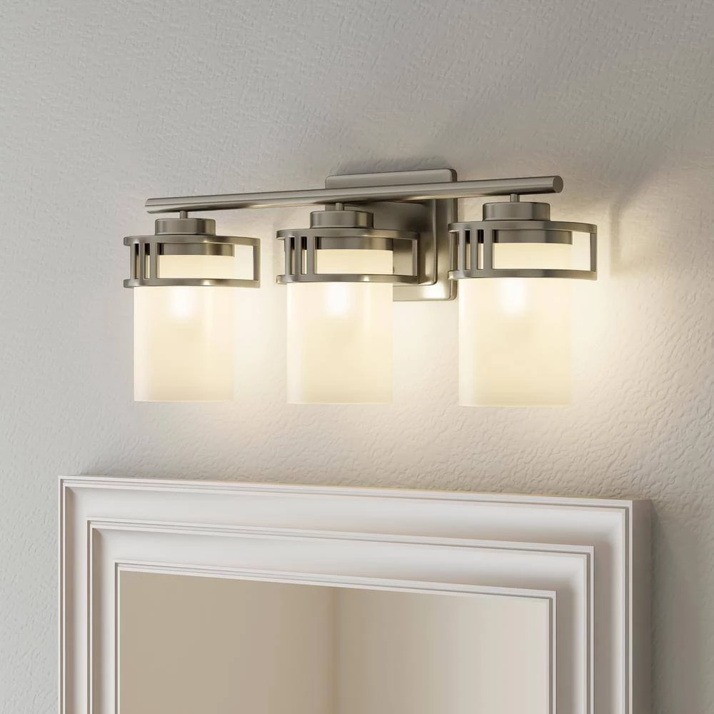 Brighten your space with this Ravendale 3-Light Bath Vanity Light. Opal white glass shades with a brushed nickel finish create soft illumination and a sophisticated visual. With all necessary hardware and instructions, you can easily install this fixture upwards or downwards.