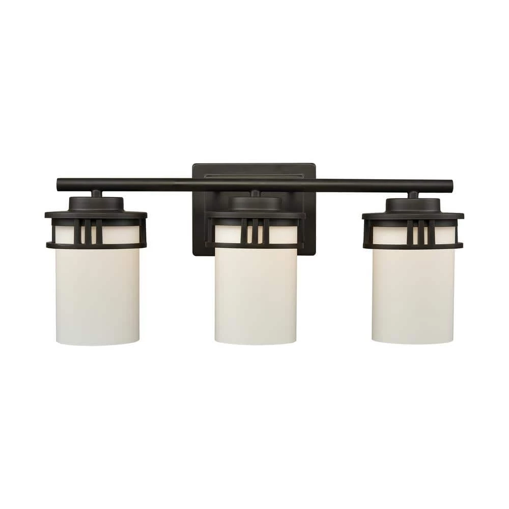 Light up your space with this Ravendale 3-Light Oil Rubbed Bronze With Opal White Glass Bath Light. It can complement a variety of design schemes. It features an elegant glass shade. Prepare for an easy installation process with this light. Mounting hardware is included.