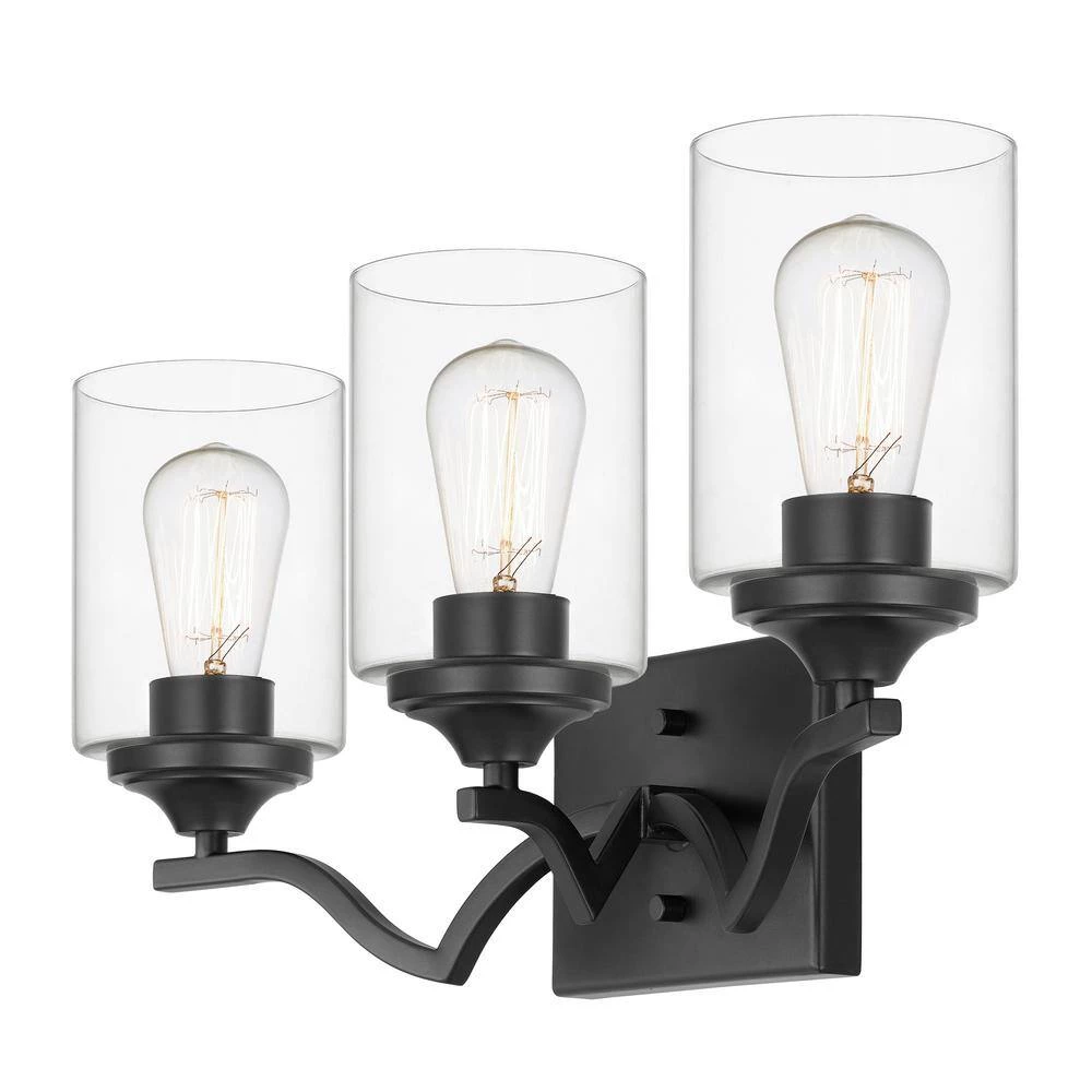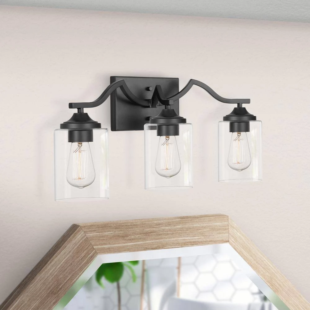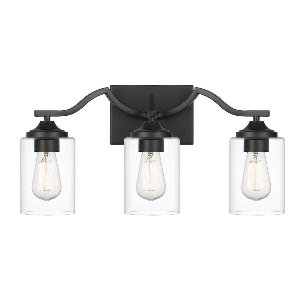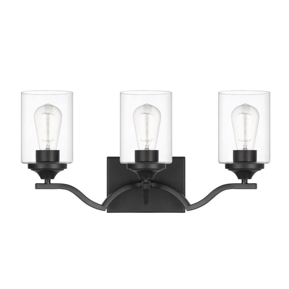 With an emphasis on unique construction, Tarantuga features a blend of materials that offer Prismatic clear glass shades set on a matte black metal frame. Delivering a modern palette that embellishes the look of any transitional bath area or vanity room. Features a reversible design that will allow you to decide whether to install facing up or down.