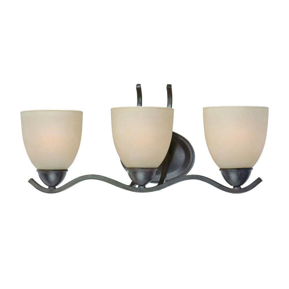 The Triton collection from Thomas Lighting features this 3-light bath fixture in Sable Bronze finish with tea stained glass. This beautiful lighting fixture will enhance the appearance of any bathroom. Recommend for use above vanities at least 20 in. wide.