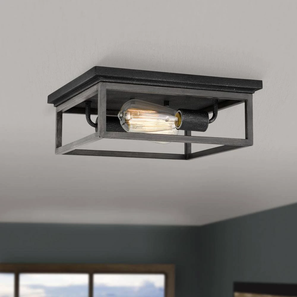 This item fixture in the iron and seaside oak finish can elevate your space. The distinctive design of this farmhouse and industrial style is seen in the overall metal structure. Highlighting the open, square frame which surrounds any bulb you choose.