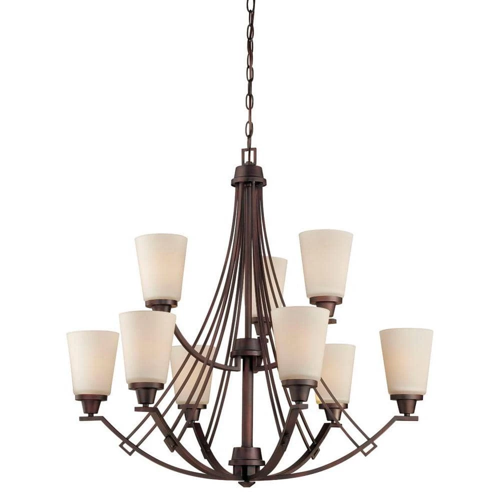 The Wright collection offers an element of subtle fresh traditional elegance. An inviting light fixture that is an ideal piece over a dining table, in a bedroom, living room, or foyer. This 9-light chandelier features a champagne stylized glass with a bronze espresso. Illuminate your space with a warm light glow that is inviting and captivating. The fixture is supplied with 12 ft. of wire and 6 ft. of chain to help you customize the right height for your space.